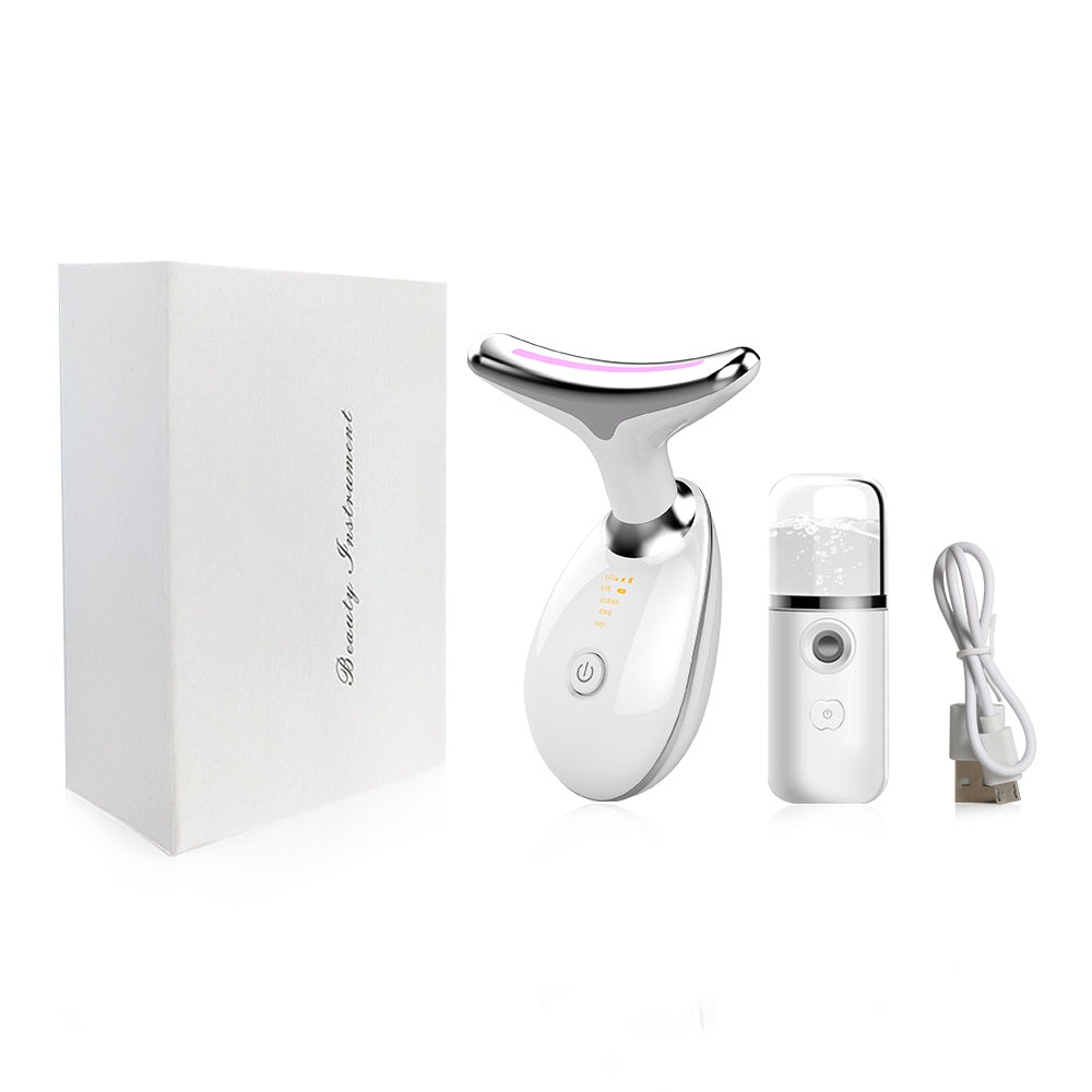 The sound wave vibration of the massage head cooperates with tour modes, as well as blue, red and Purple light and EMS massage. which together promote blood circulation stimulate the acupoints of the face and neck, dredge the meridians, improve circulation. promote metabolism, and promote long-standing waste toxins t can reduce the aging of epidermal cells.