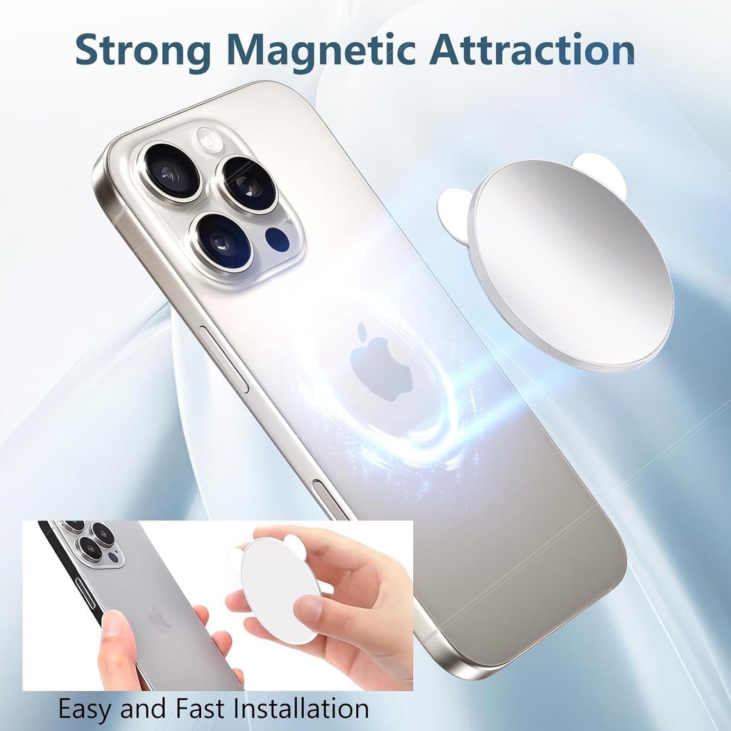 Strong magnetic attachment: Snaps securely onto MagSafe-compatible iPhones or any phone case equipped with the included adhesive metal ring—no residue, no fuss.